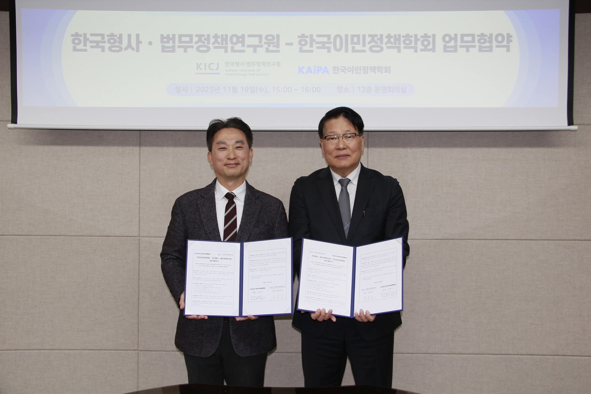 2025년 한국이민정책학회-한국형사법무정책연구원 업무협약(MOU) 체결(2025. 11. 19.)