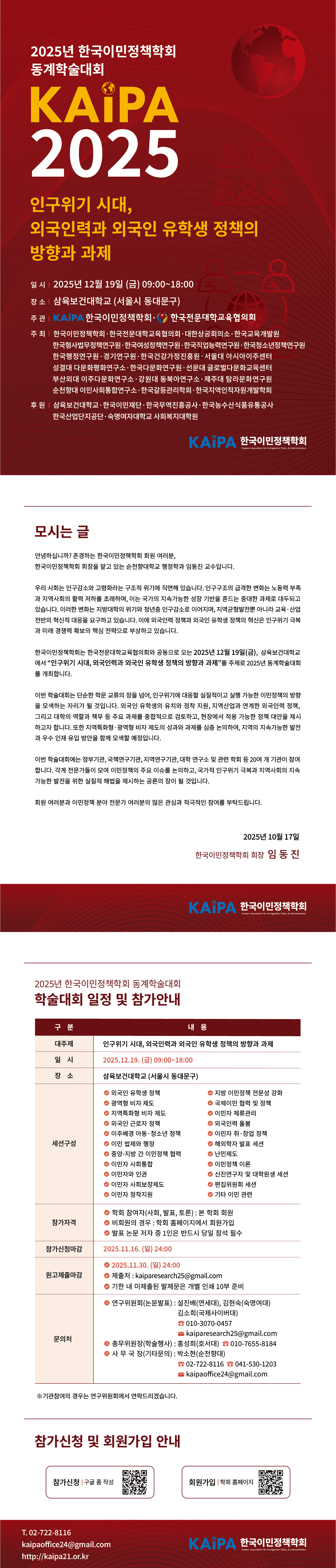 [학술대회] 2025년 한국이민정책학회 동계학술대회 개최 및 참가 안내(2025.12.19)