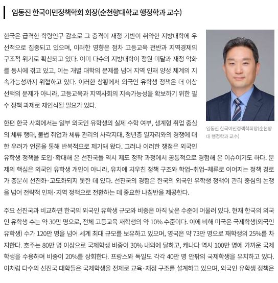 [한국대학신문] (2026.02.25.) 외국인 유학생 정책, 선진국들은 무엇을 다르게 하는가