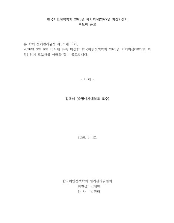 한국이민정책학회 2026년도 차기회장(2027년 회장) 후보자 공고(2026.3.12).pdf